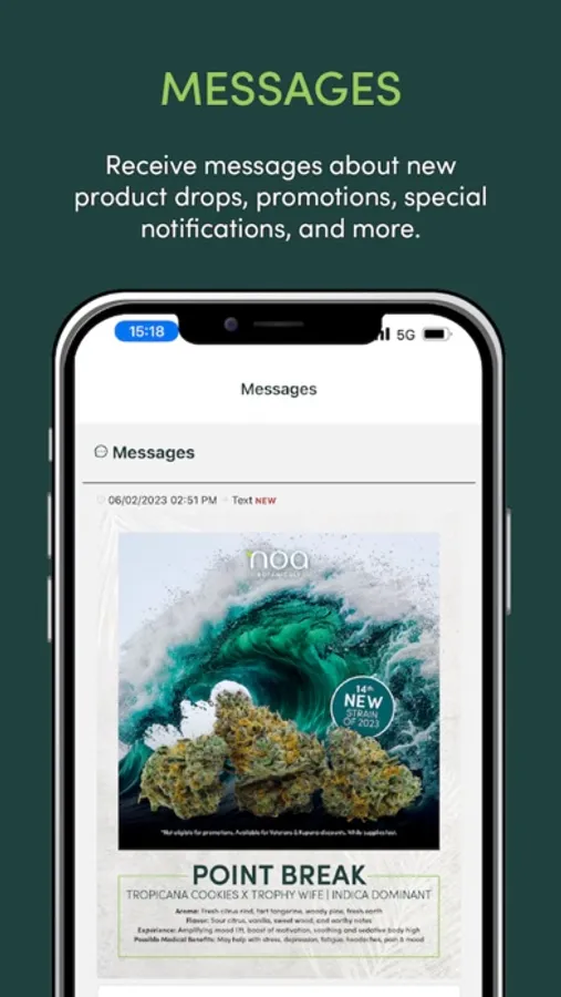 Through our messaging center, you can keep track of all notifications and messages sent to you from Noa Botanicals.