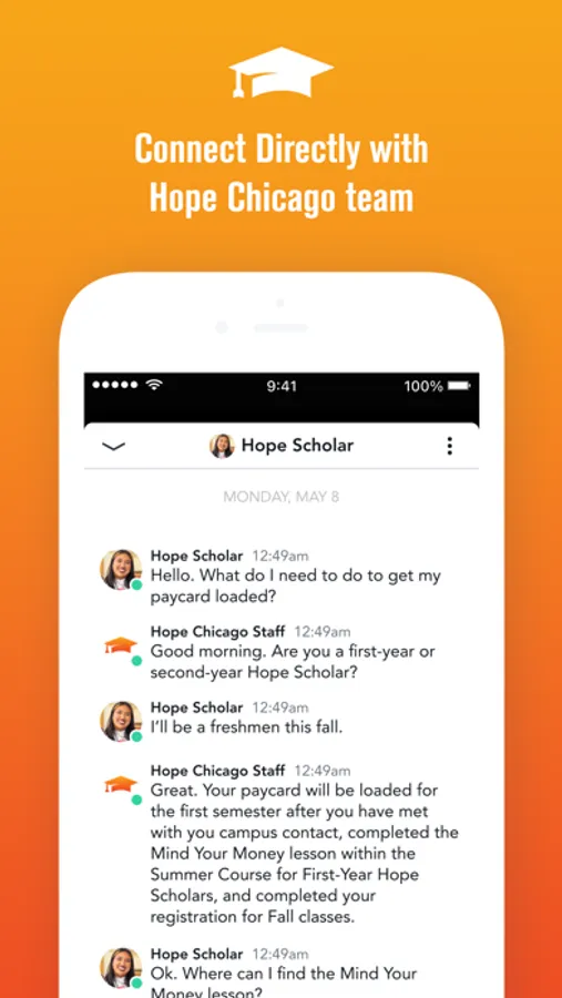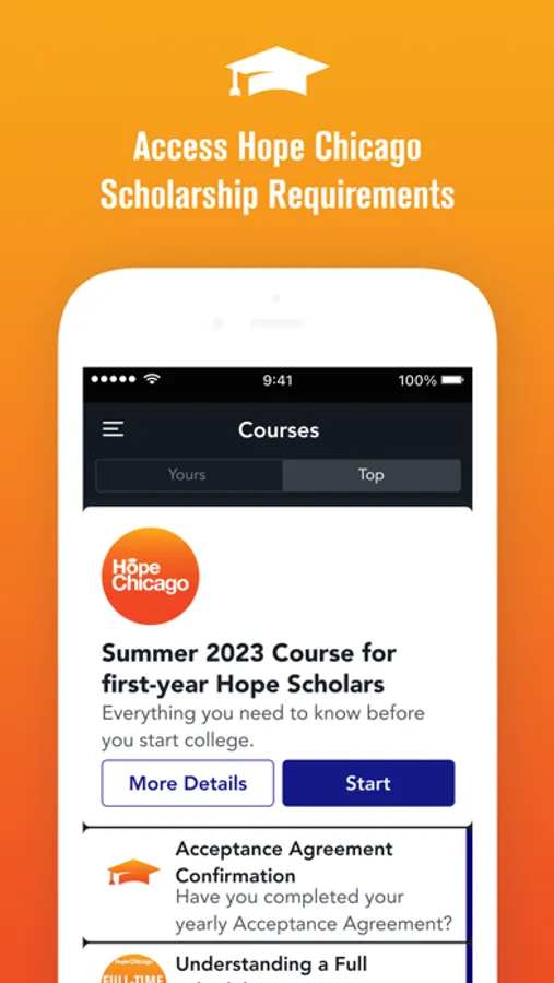 This app is exclusively made for all Hope Scholars—whether you attend an In-Network or Out-of-Network institution. The regular use of this app is critical to your ongoing Hope Chicago scholarship. Join our community today and take a BIG STEP towards a successful postsecondary journey.
