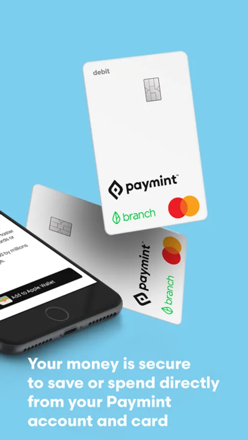 Banking services are provided by Evolve Bank & Trust, Member FDIC. Paymint is a Mastercard debit card and account powered by Branch and issued by Evolve Bank & Trust pursuant to a license from Mastercard. It may be used everywhere Mastercard debit cards are accepted, subject to certain restrictions, local laws, regulations, and the terms and conditions outlined in the account and cardholder information provided to you.
