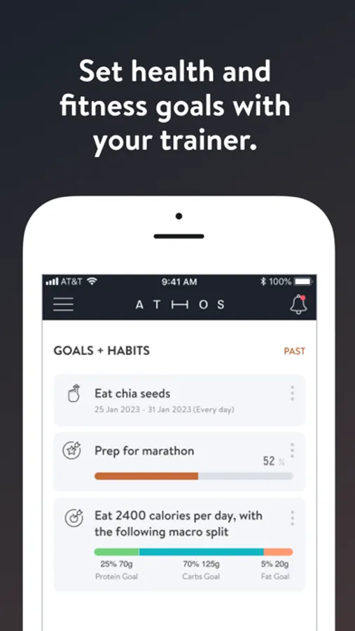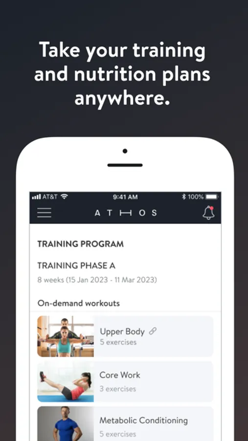 With the Athos Training App, you will have access to workout programs designed specifically to help you reach your fitness and health goals! You can follow & track your workouts, your nutrition, your lifestyle habits, measurements and results–all with the help of your coach.