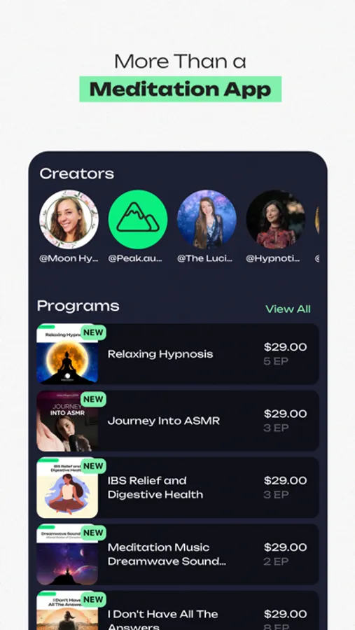 * Convenience: programs can be accessed and listened to at any time, making it easy to fit meditation into busy schedules.
