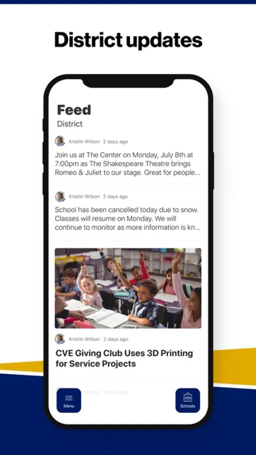 In the Live Feed is where you'll find updates from the administration about what's going on in the district right now. Whether that's celebrating a student's success, or reminding you about an upcoming deadline.