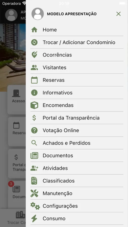 Chega de papel! Tudo que você precisa em um só lugar. Reservas, ocorrências, visitantes, cadastro de moradores, informativos, enquetes, documentos e muito mais.