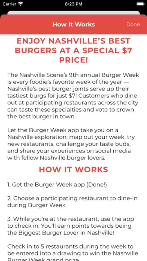 Let the Burger Week app take you on a Nashville exploration; map out your week, try new restaurants, challenge your taste buds, and share your experiences on social media with fellow Nashville burger lovers.