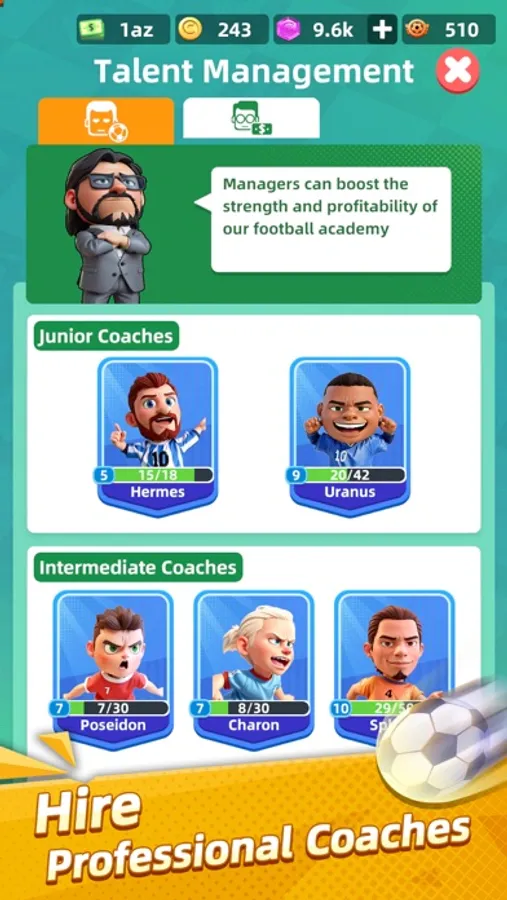 Manage the Soccer Academy, and produce more soccer talents for the soccer world!