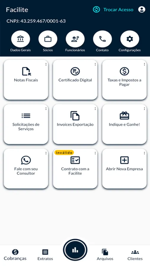 Gestão de contas: mantenha suas finanças organizadas com a possibilidade de adicionar, atualizar e visualizar todas as suas contas em um só lugar. Monitore seus saldos e transações em tempo real, e ganhe uma visão abrangente do status financeiro da sua empresa.