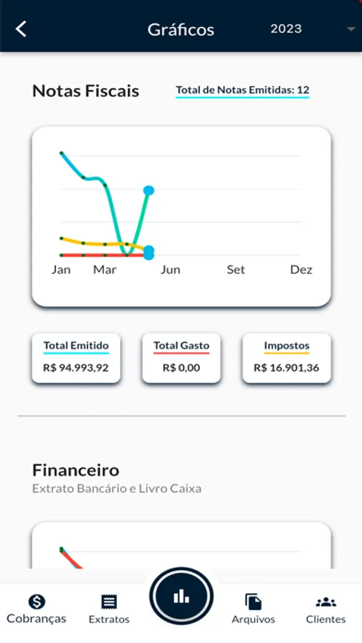 Analise o desempenho da sua empresa, identifique áreas de melhoria e tome decisões estratégicas embasadas em dados concretos, através de gráficos de fluxos mensais e anuais.