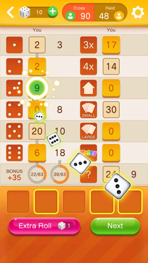 - Need one more to complete the desired combination? Use Extra Dice to reroll one additional time!
