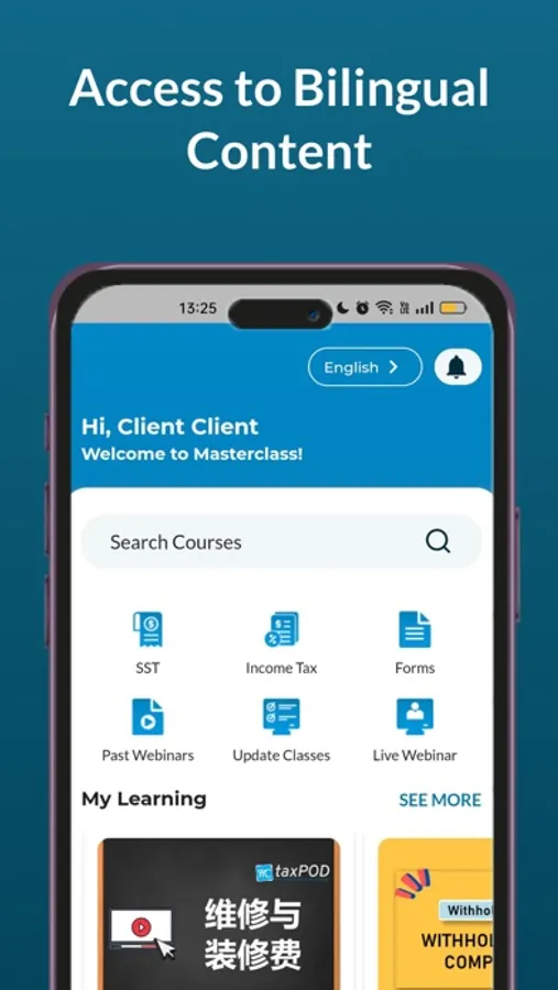 TaxPOD app allows you to access hundreds of videos on tax and live webinars by professional trainers. You'll get instant tips and advice on tax and bilingual content is provided for you.