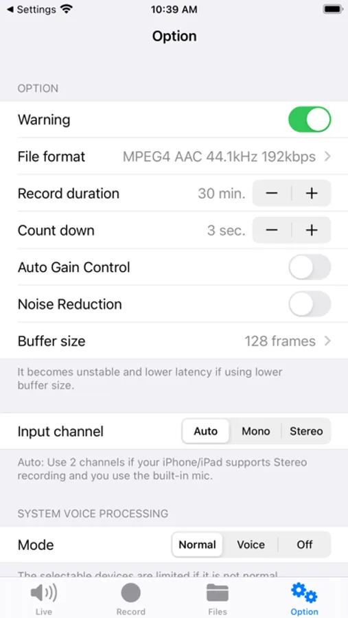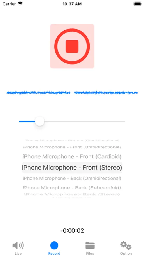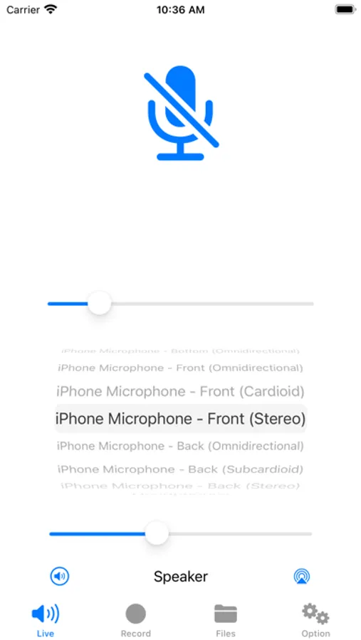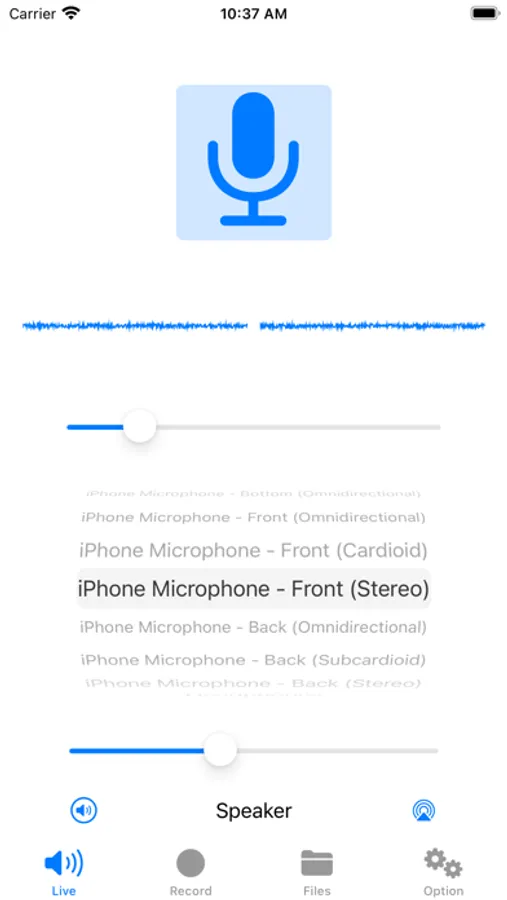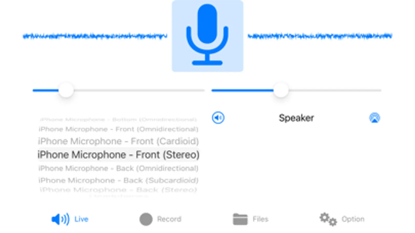 Use your iPhone/iPad as a microphone and output sound to headphones or speakers. You can also use it to record audio instead of playing sound.