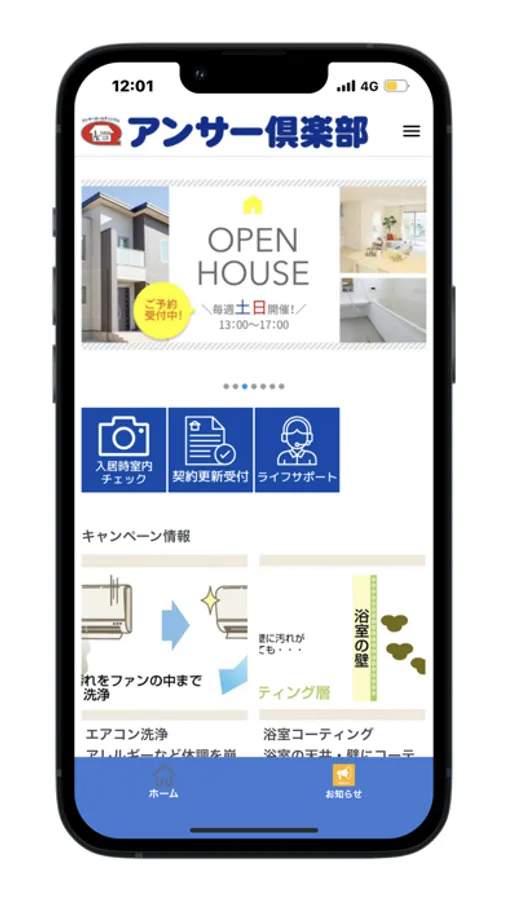 弊社管理物件の入居者様、売買契約者様向けに契約状況のお知らせや、お得なキャンペーンをお届けします。