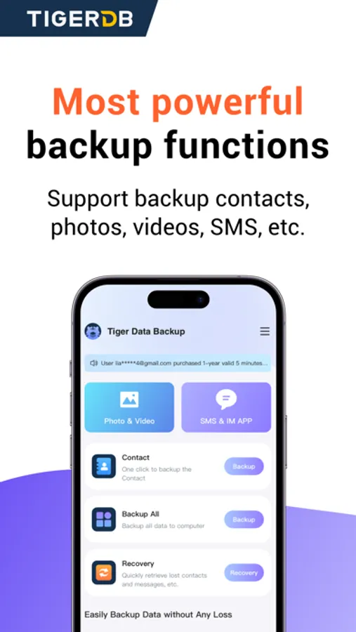 Tiger Data Backup is the ultimate solution for personal data protection, created to back up, restore, and transfer your data and secure all of your photos, videos, messages, and contacts to your computer.