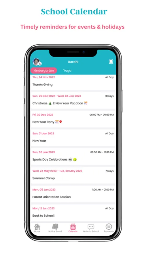 Check all the upcoming events, holidays and get timely reminders