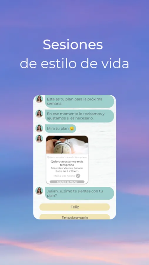 Diseñada con ciencia del comportamiento, nuestra coach de estilo de vida virtual te guía usando una metodología eficaz a través de la consciencia, motivación y disciplina para que logres incorporar nuevos hábitos a tu día a día.