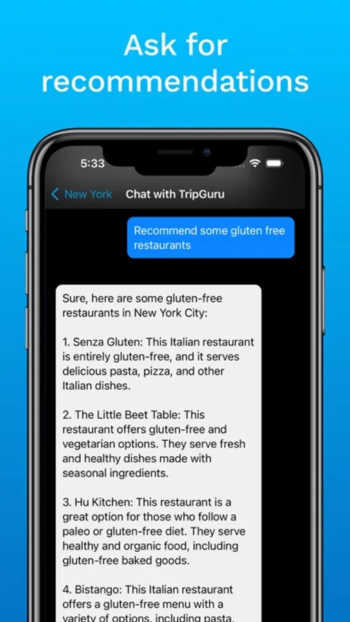 Plan your holidays with the help of AI. With TripGuru you will get tailored recommendations for your next trip in just a few taps. No more spending countless hours planning what to do and what to visit.