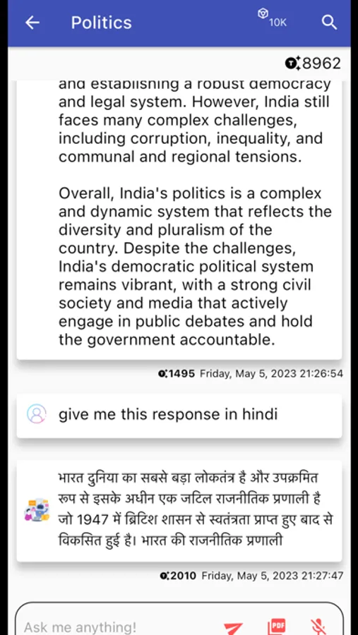 With multilingual functionalities, you can engage in any language and translate texts effortlessly. Whether it's sports, politics, or science, It is always eager to chat about any topic.