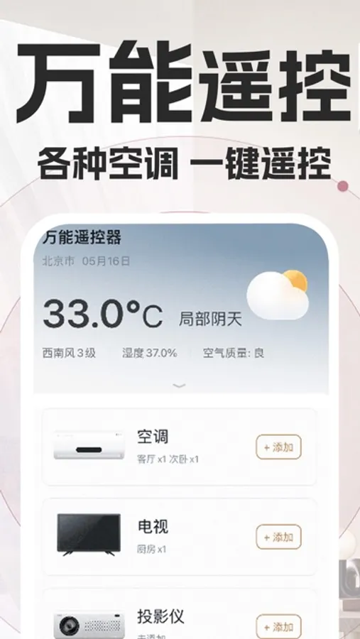 APP可支持的设备:空调,电视,投影仪,机顶盒,遥控风扇……后续会不断增加适配设备。