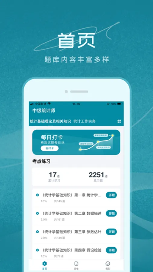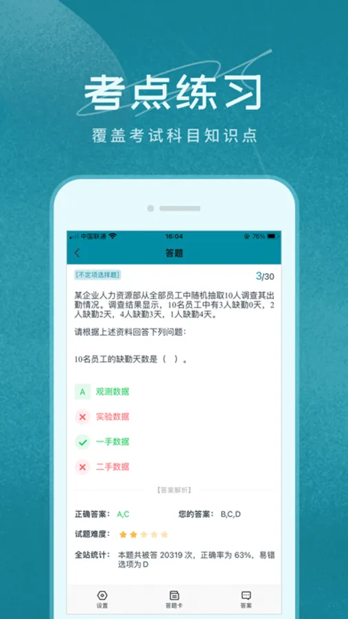 【应用特点】:√ 精选题库:每日一练、历年真题、考点练习、模拟试题。告别传统题海战!√ 多年资深团队出品,专注初中级统计师考试,多样化辅导,助力学员通关。√ 统计师考试“报名、查分、领证、教材等”信息第一时间获取!