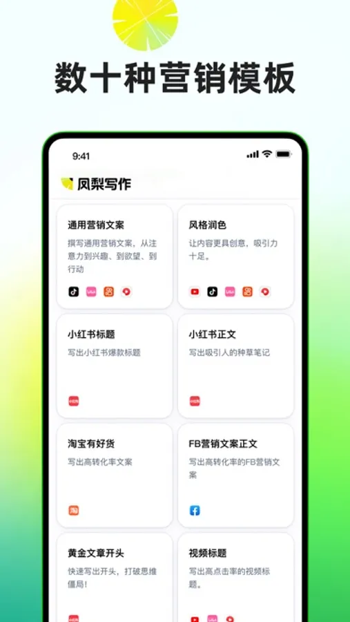 凤梨写作提供了数十种模版,让您可以轻松发布高质量的文案,提升产品营销力。