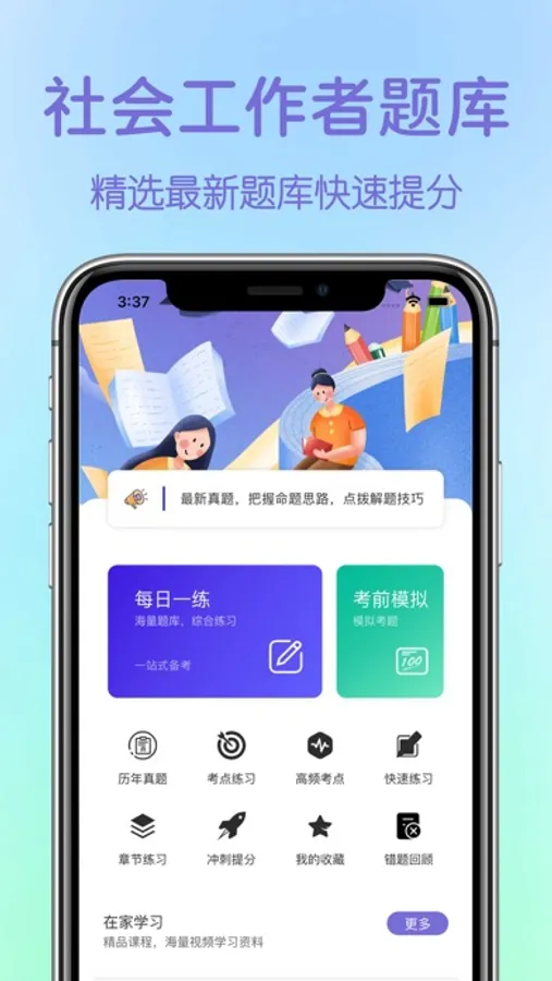 主要功能包括考点练习、高频考点、历年真题、考前模拟、冲刺提分等等多种形式刷题模式,具有综合基础知识专项练习,试题100%解析,把握命题思路,点拨解题技巧,高频考点+高频易错,以题带点,深度解析。
