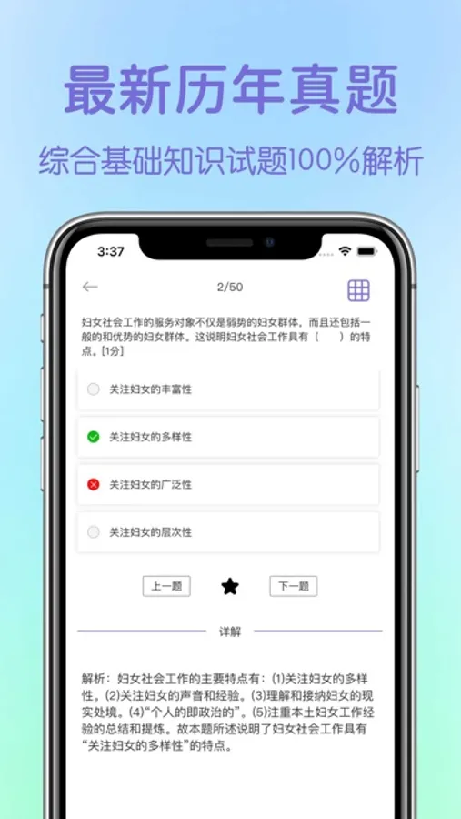 每日一练:综合基础知识分析题专项训练,每一道题目都有详尽的解析,可选择不同题型,并可手动将易错或未牢固掌握的题加入复习库和错题库,以便反复练习。