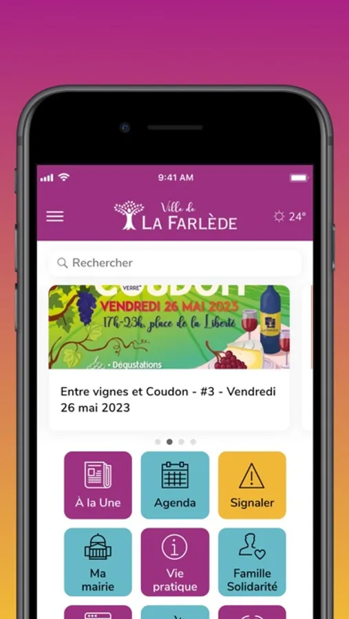 Découvrez l'application officielle de la Ville de La Farlède. L'appli mobile simple et intuitive qui vous permet de rester connecté.e à votre commune, de suivre l'actualité en temps réel et de vous faciliter la ville !