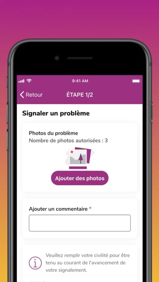 • Effectuer le signalement d'un problème au sein de la commune (voirie, propreté, espaces verts, éclairage...)