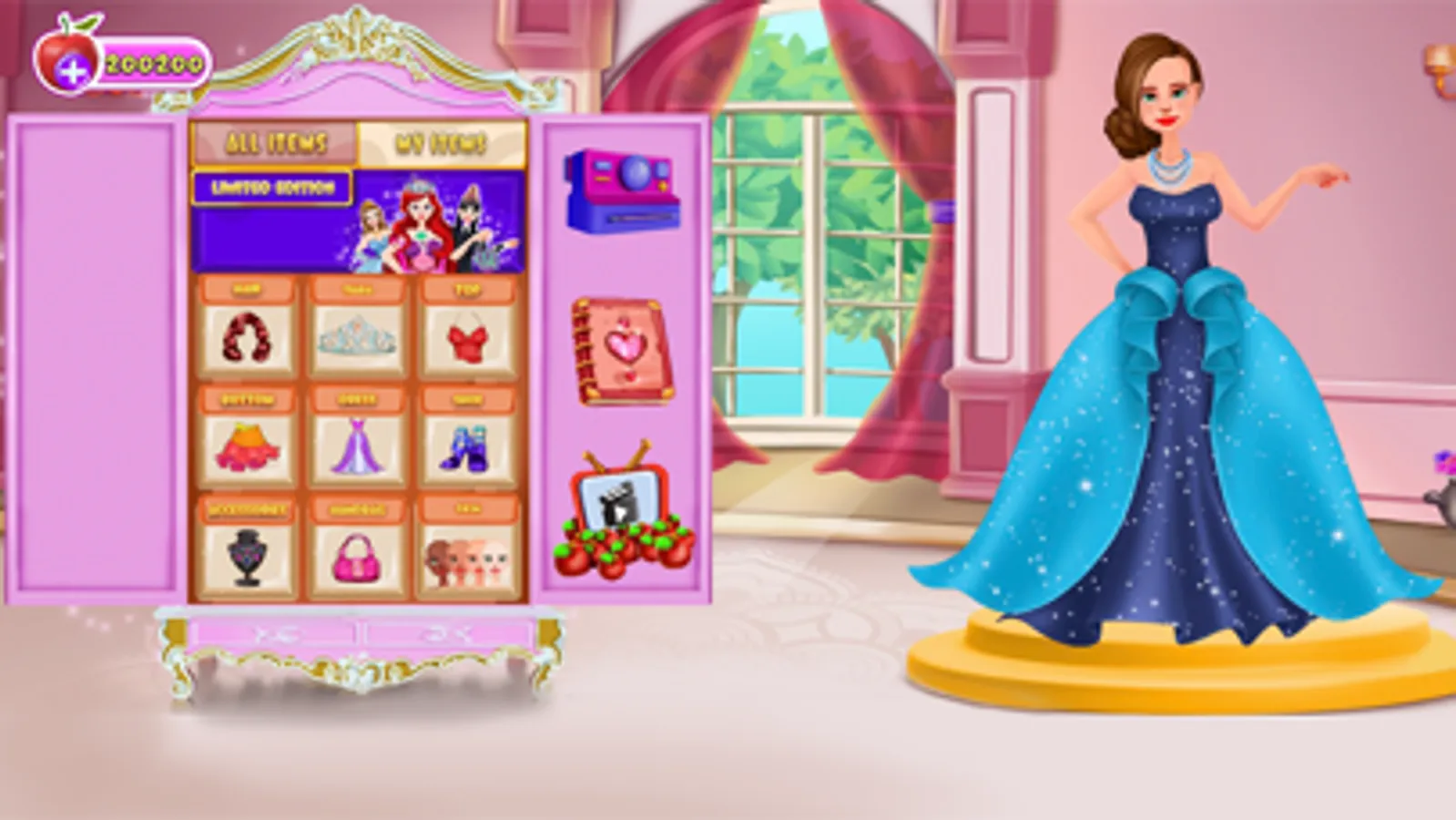 - After collecting the apples, check Snow White’s wardrobe and dress her however you like. Help her to shine like a star!