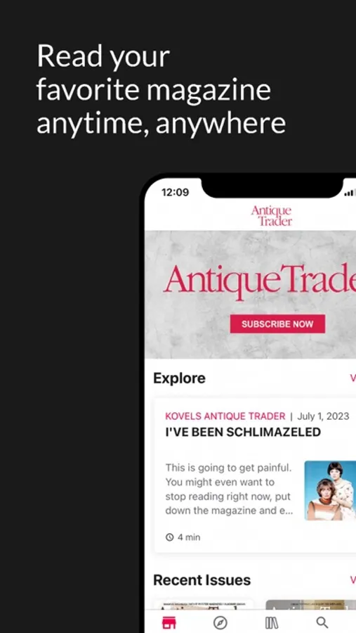 Whether you're looking for a trusted place to bid in auctions, buy or sell, Antique Trader is the top resource to find online auction sites, auction houses, and expert advice about antique furniture, jewelry and collectibles. Thousands of antiques and collectibles are for sale in each issue as well as hard to find items to buy, sell, or trade. Antique Trader also contains the most current and comprehensive information on antique shows and stores and earns best-selling honors year after year by providing precise descriptions and current pricing.
