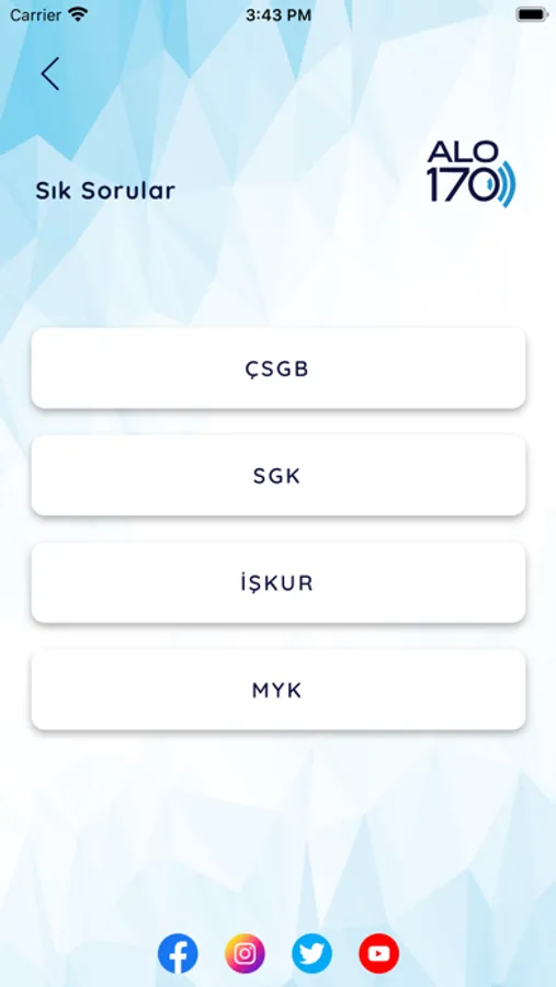 Çalışma Hayatı İletişim Merkezi Alo170, ile hükümetin sağladığı hizmetlere kolayca erişin. Hemen indirin!