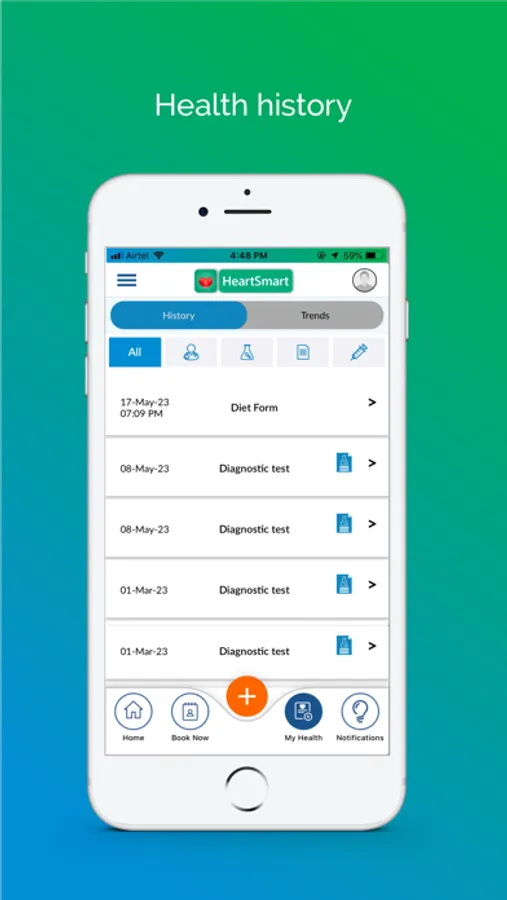HeartSmart is a one-stop solution for all your health needs. You can maintain your health history including doctor/dietitian prescription, diagnostic test results and various health parameters, book appointment for additional health services, have video consultation with doctors.