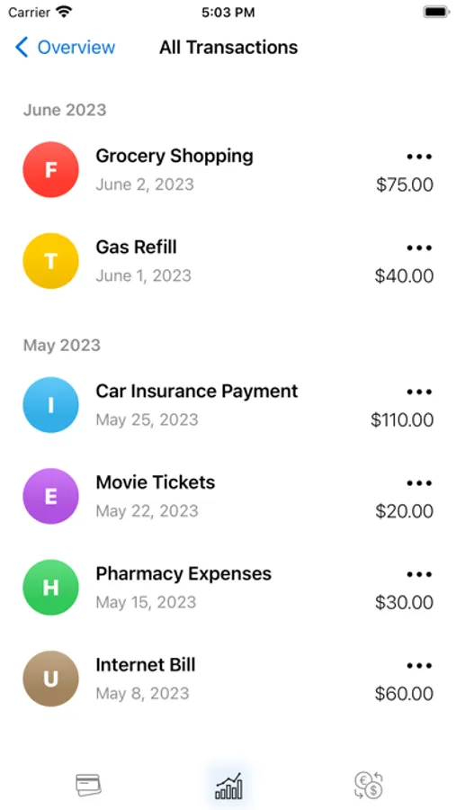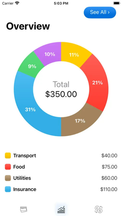 Get a clear understanding of your expenses through an intuitive pie chart diagram.