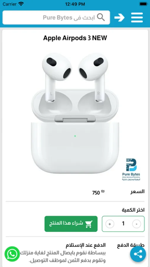 تطبيق متجر Pure Bytes يتيح لكم تجربة تسوق فريدة من خلال عرض تشكيلة واسعة من المنتجات الإلكترونية، حيث يمكنكم طلب المنتج ليصل الى عنوان سكنكم مباشرة