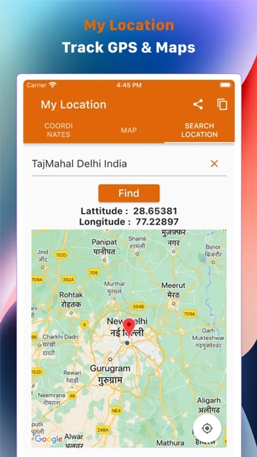 • Map Integration: Easily visualize your location on an integrated map interface. With a single tap, you can view your coordinates on a detailed map, allowing you to navigate your surroundings more effectively or identify nearby points of interest.