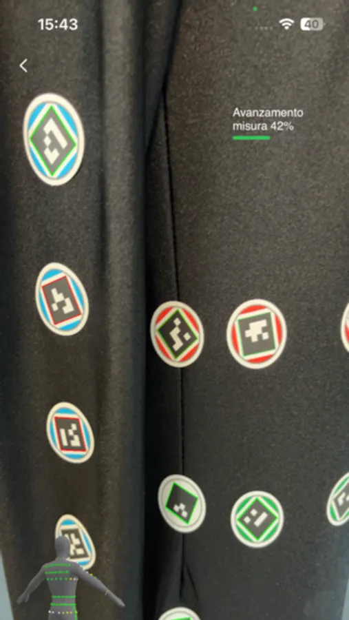 Dress the PROKE wearable with the tags positioned in strategic points and start scanning. The smartphone camera scans the tags, precisely measuring every feature of the body.