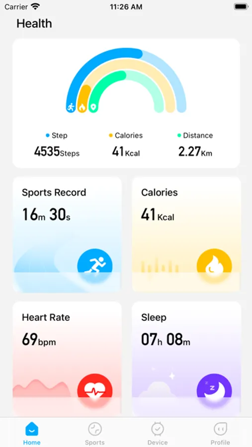 • 记录每天的运动步数,计算每日消耗的卡路里、运动距离、运动时间。
