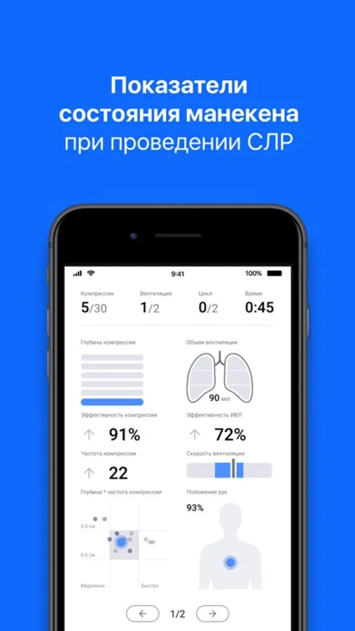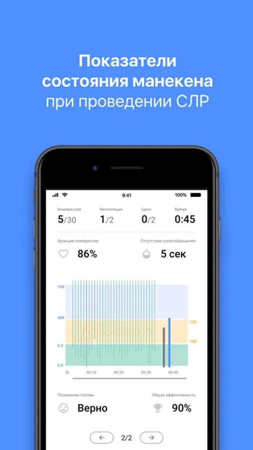 Приложение для отработки навыков сердечно-легочной реанимации предназначено для беспроводного подключения манекенов к телефонам и к планшетам.