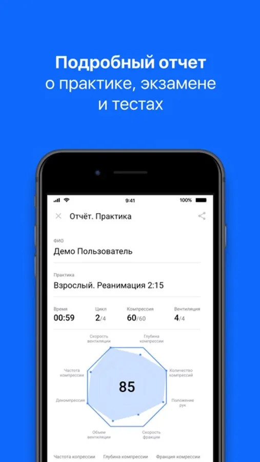 Приложение позволяет эффективно проводить занятия, приобретать психомоторные навыки и получать объективную обратную связь. Программное обеспечение отслеживает правильность выполнения СЛР в режиме реального времени: цветовая кодировка наглядно демонстрирует, насколько корректно выполняются компрессии и вентиляции.