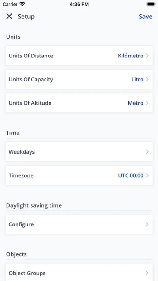 - Historia y Reportes: crea y descarga reportes del vehículo o flotilla de vehículos