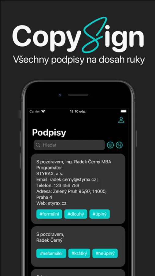 CopySign makes it easy for you to write signatures in emails, texts and other applications. You don't even need to create signatures. The app asks you to fill in your profile information and generates the signatures itself based on that information. The signatures generated are formal, but also informal. Short or long.