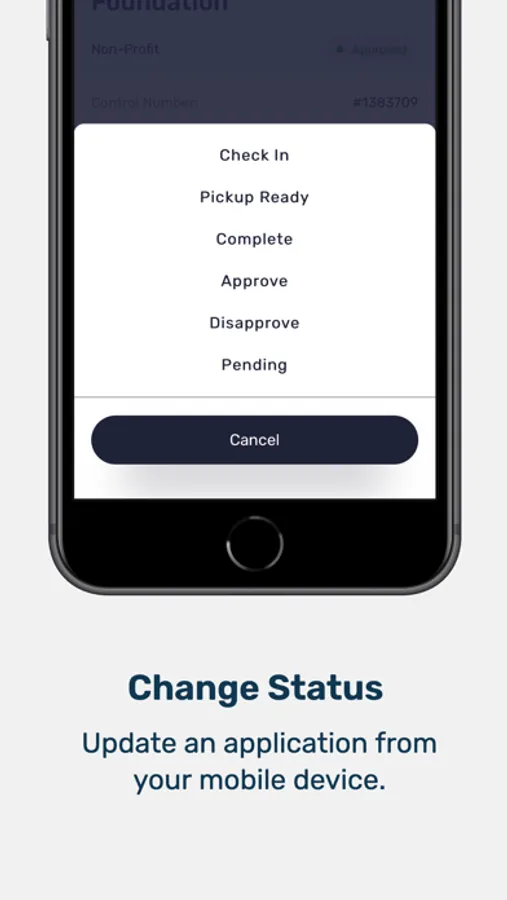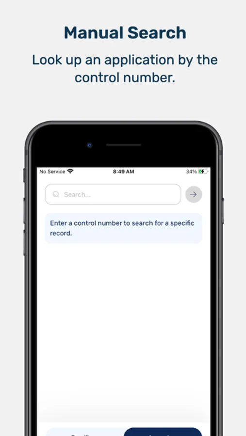 The application provides for applicant checkin via two methods. Scanning of the QR code from the applicant provided in their application approval. Or by performing an application search via application ID also provided in an approved application.