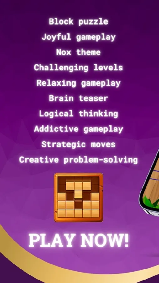 Block 9 Puzzle : Nox Puzzle Joy, wood block puzzle game is a Tetris-like block puzzle game, with woody style. It's a great game as a time killer and also helps train your brain as well. The cube block puzzle game is unlimited in style, you can play as long as you want without being interrupted. There are many kinds of block shapes, T-shaped, L-shaped, J-shaped, square-shaped, etc.