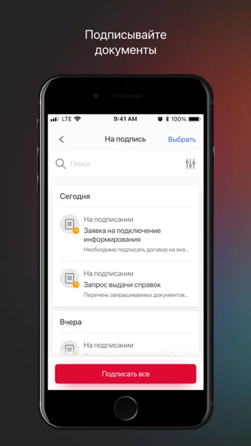 • Просматривать, подписывать, отказывать и отправлять документы