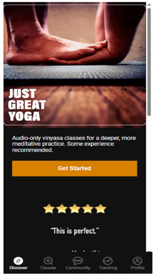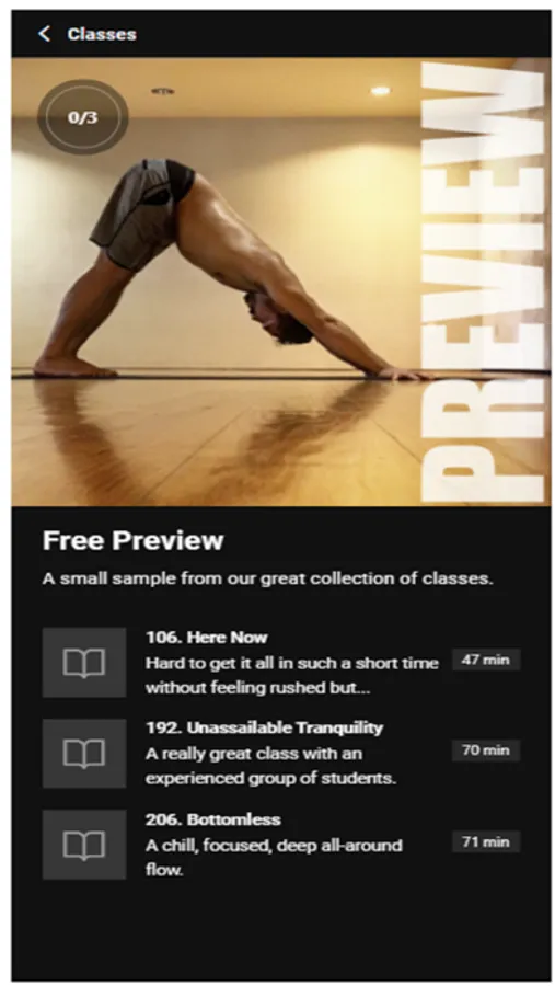 Classes are accessible for all experience levels, but a fundamental understanding of yoga practice is strongly recommended before making the shift to audio-only instruction. Brand new yoga students need a baseline familiarity with common poses and general class structure. If you have a dozen vinyasa practices or so under your belt, you should be able to follow along easily.