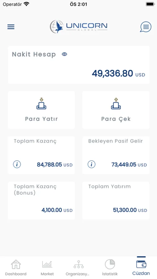 Unicorn globals 'e ait hesaplarınızı yönetebileceğiniz mobil uygulama