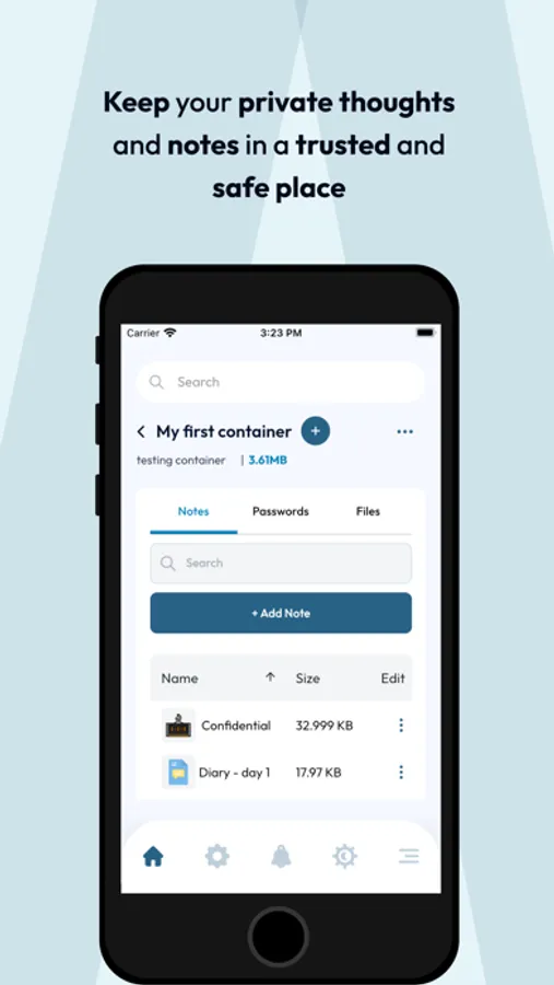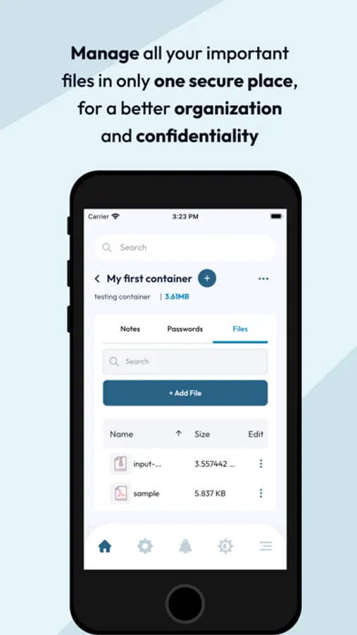 - Storage of confidential information: Manage files, documents and store pictures securely.