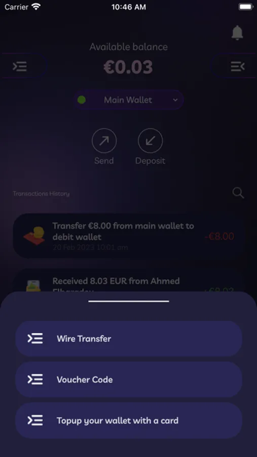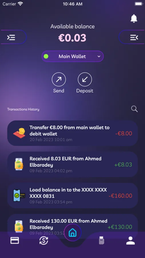 Our wallet app allows you to use your money from virtually anywhere in the world. All you need is your phone and you will be able to manage your money easily and conveniently. Send money, receive payments instantly and use your prepaid card associated with the wallet. Time is money and our mobile app saves you time, it's great.