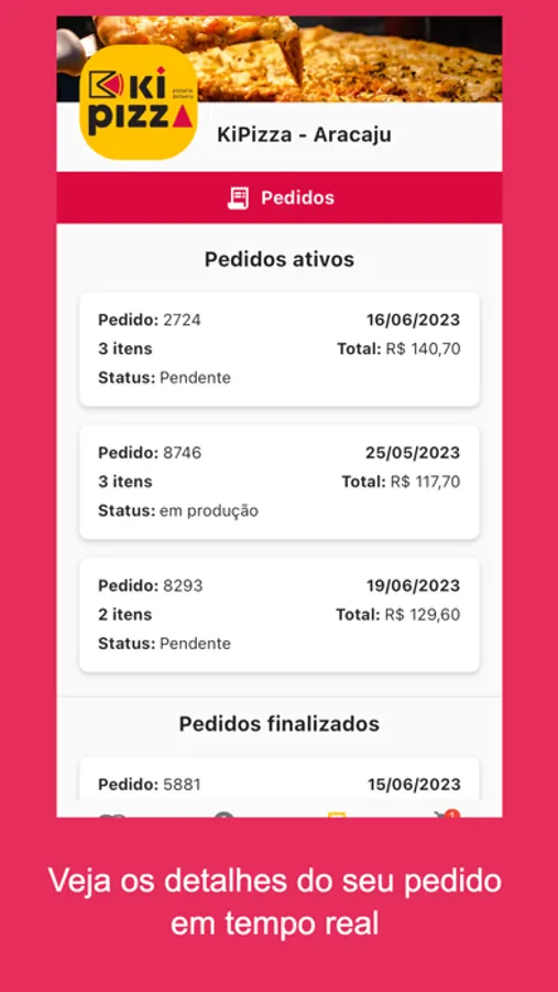 Não perca mais tempo ligando para fazer seus pedidos ou enfrentando filas. Baixe agora mesmo o aplicativo da KiPizza e faça seus pedidos com muita facilidade e praticidade.