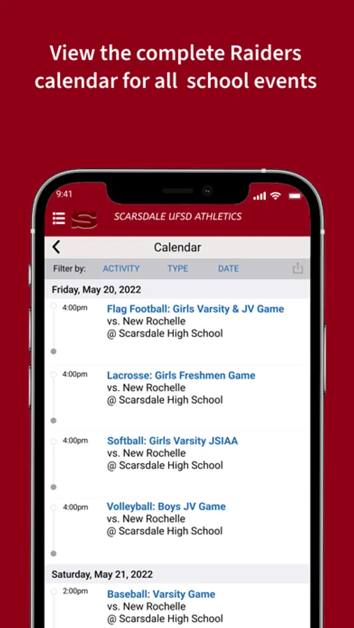 The Scarsdale UFSD Athletics App is your complete source for all of your team’s information including schedules, rosters, scores, photos, highlights and more.