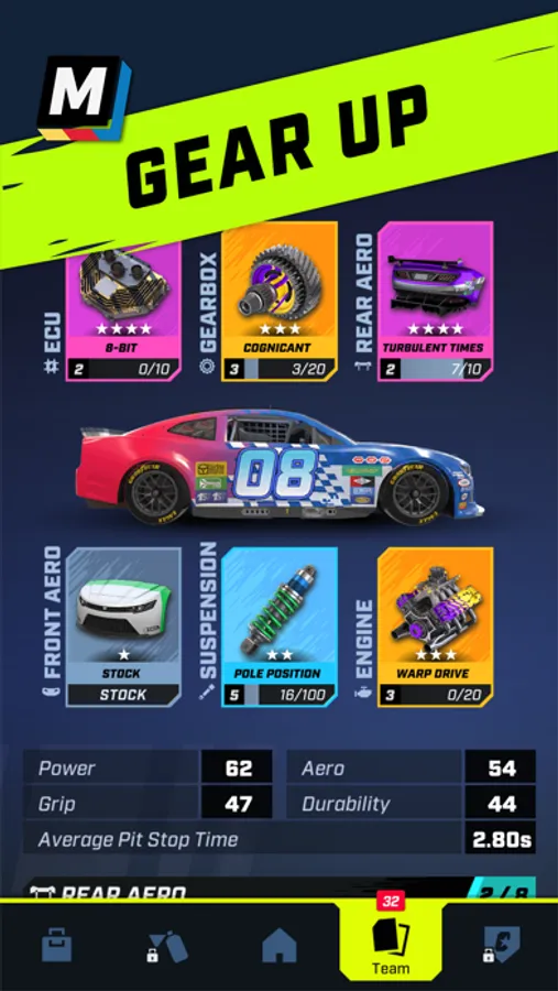 Recruit and train NASCAR drivers to create your ultimate team, complete with unique custom liveries and detailed car tuning.